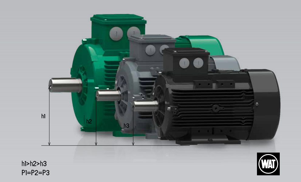 La produzione completamente interna dei motori WAT ha permesso di realizzare motori asincroni nelle versioni Standard, Compact e Super Compact con efficienza energetica IE3 e IE4.